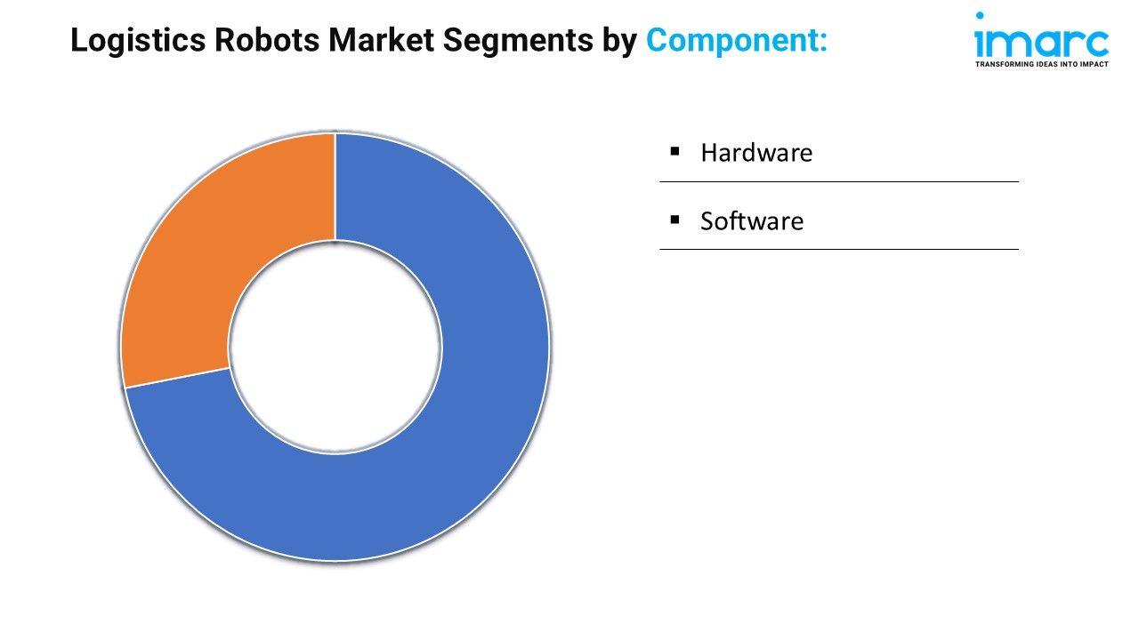 Hardware is the dominant segment in the logistics robots market, representing the largest market share. This includes essential physical equipment and machinery, such as the core structure or chassis, actuators, and grippers, which are crucial for the operation and functionality of logistics robots.